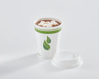12 oz PLA Lined Insulated Compostable Paper Cup. Perfect size for breakfast, lunch, dinner, coffee, tea, smoothies, juice, water, soda and any other hot or cold beverage.